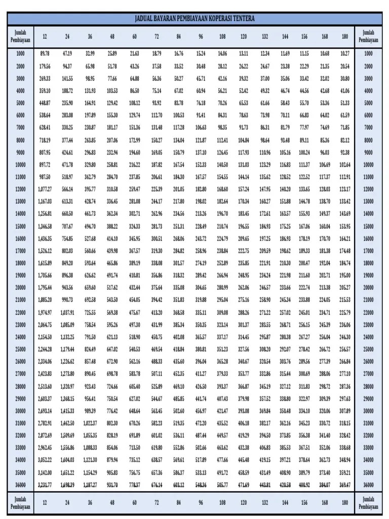Jadual Bayaran Pembiayaan Koperasi Tentera Pdf