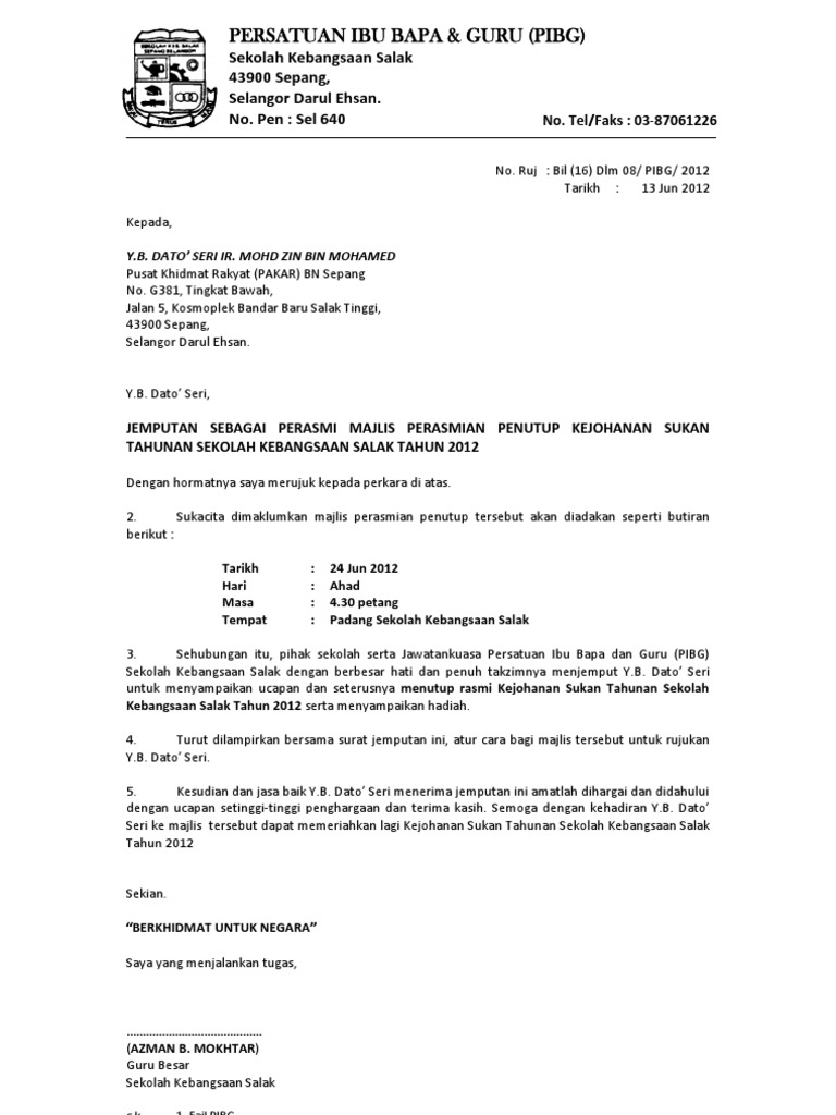 Surat Jemputan Yb Ke Sukan Tahunan Pdf